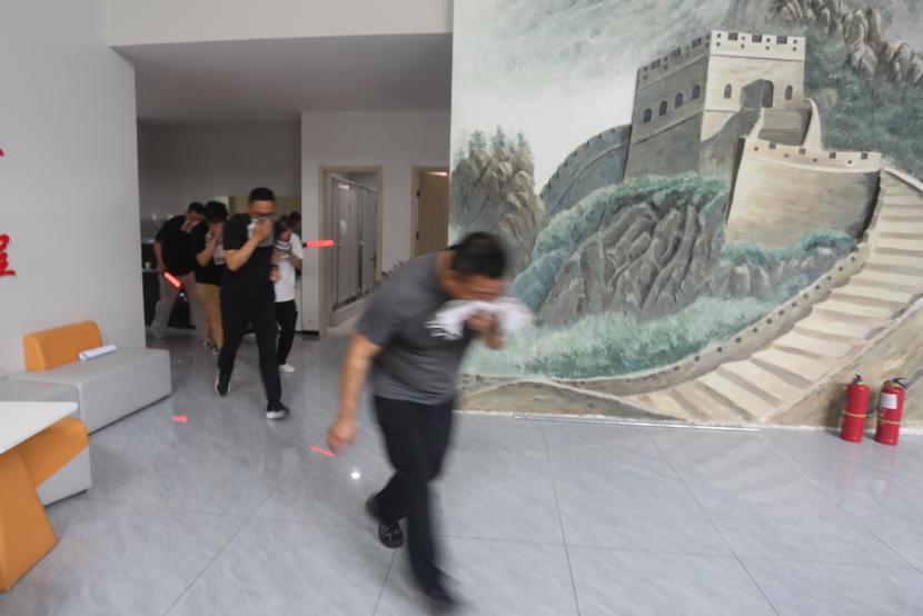 理論培訓結束后,隨即開展了應急疏散演練。公司成立消防應急指揮部,公司黨委書記、董事長王德志作為現(xiàn)場演習總指揮,負責演習現(xiàn)場滅火指揮。滅火行動組、疏散引導組、設備保障組、安全警戒組、醫(yī)療救護組、通訊聯(lián)絡組、信息宣傳組等專業(yè)小組準備就緒,在收到火情報警電話后,第一時間集結各組進行應急任務分配和人員調度啟動應急演練。隨著警報聲響起,辦公樓內全體員工迅速按照預定的疏散路線,捂住口鼻、彎腰低姿,有序地向辦公樓外安全區(qū)域疏散。整個疏散過程緊張有序,演練時長控制在2分鐘以內,有效檢驗了公司應急預案的可行性和員工的應急反應能力。
