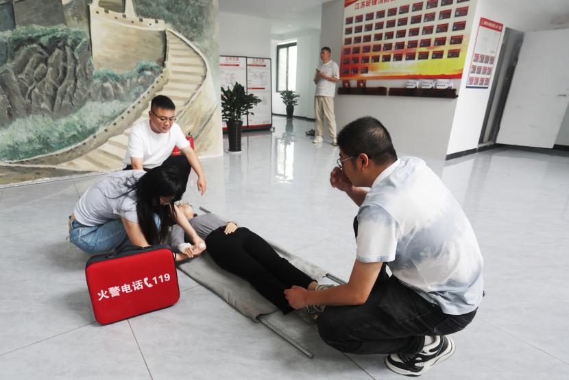 培訓中,連云港德安消防職業(yè)培訓學校資深教員王彥結合多年的工作經驗和實際案例,細致地向大家開展了消防理論培訓,結合室內外的消防設施的作用,系統(tǒng)講解了整個建筑消防系統(tǒng)的工作流程,介紹了應急疏散逃生的正確方法步驟;現(xiàn)場教學了消防護具穿戴、自救呼吸器使用;演示了簡易擔架制作、簡易包扎;著重示范了心肺復蘇以及海姆立克急救等。通過生動形象講解,全體員工對消防安全知識有了更全面、更深入了解。
